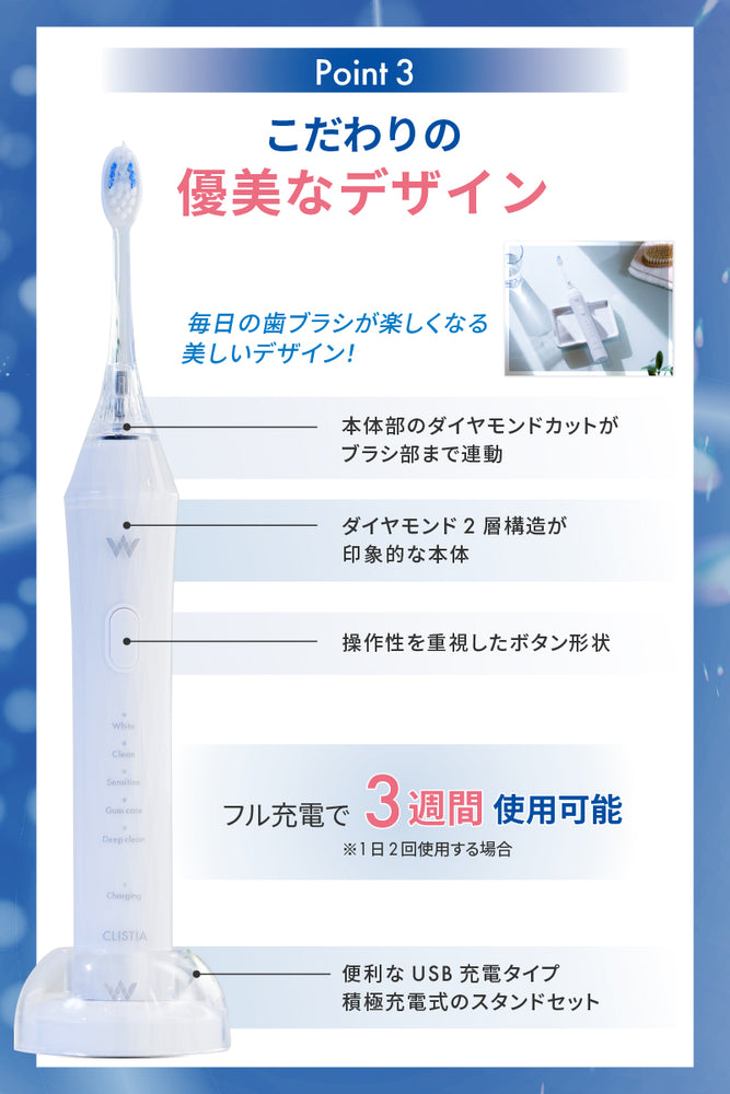 やさしい磨き心地なのにしっかり汚れを落とす、女性向けの電動歯ブラシです。